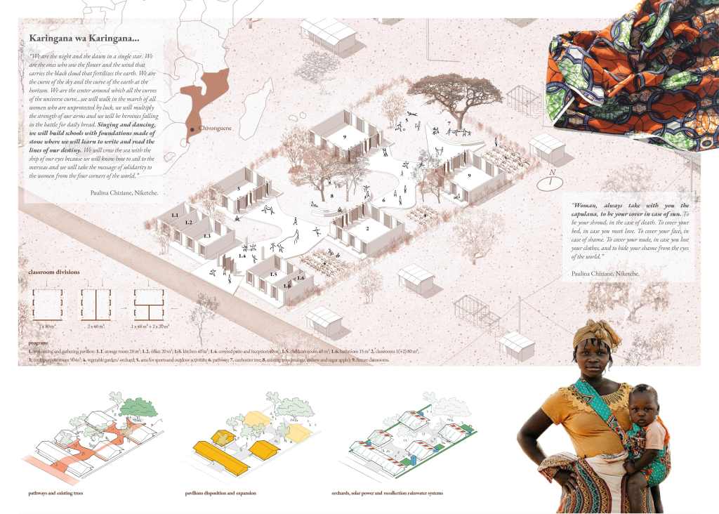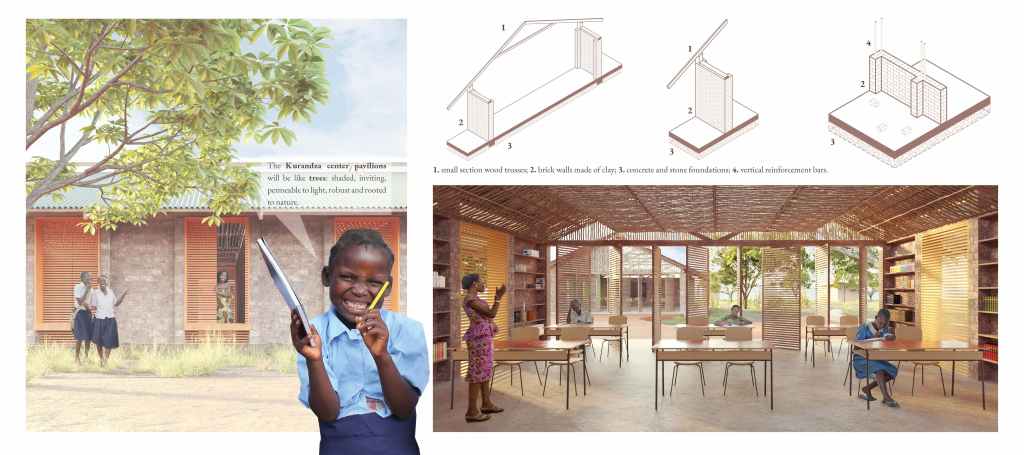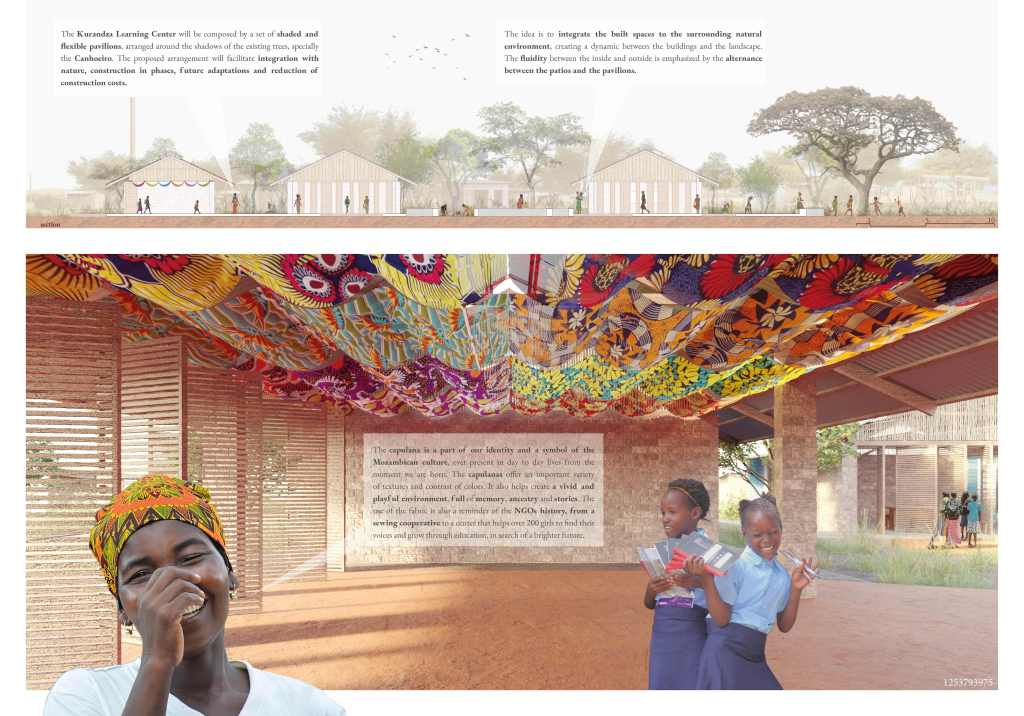 Trata-se de projeto classificado como Menção Honrosa no Concurso Internacional para o Centro de Aprendizado Kurandza, em Chivonguene, Moçambique.