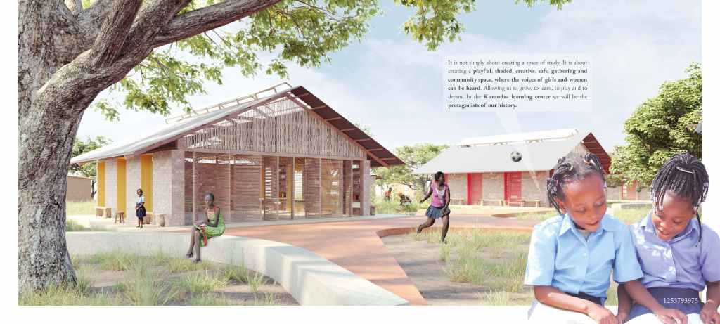 Os espaços do Centro de Aprendizado Kurandza são idealizados como árvores: sombreados, convidativos, permeáveis à luz, robustos e integrados à natureza. Não se trata simplesmente de criar espaços de aprendizado, mas também de promover ambientes lúdicos, sombreados, criativos, seguros; espaços comunitários onde as vozes das meninas e mulheres possam ser ouvidas. Espaços que permitam que as meninas possam crescer, aprender, brincar e sonhar. No Centro de Aprendizado Kurandza, as meninas de Chivonguene serão protagonistas de sua própria história.