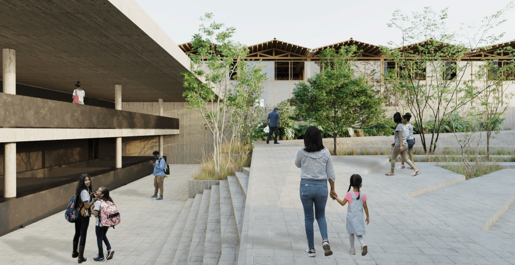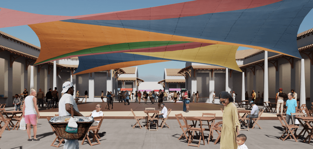 Como parte da estratégia de requalificação urbana do Largo, serão criados pátios, que irão se configurar como recintos urbanos definidos pelas barracas fixas e móveis; contrastes súbitos no percurso labiríntico, entre os espaços fechados e abertos.