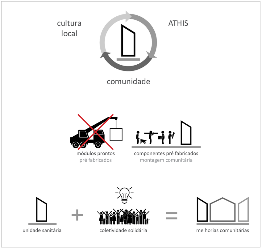 não se trata apenas de oferecer uma unidade sanitária. propõe-se construir, com a participação da comunidade, dos arquitetos e técnicos da athis, um sistema de coletividade solidária.