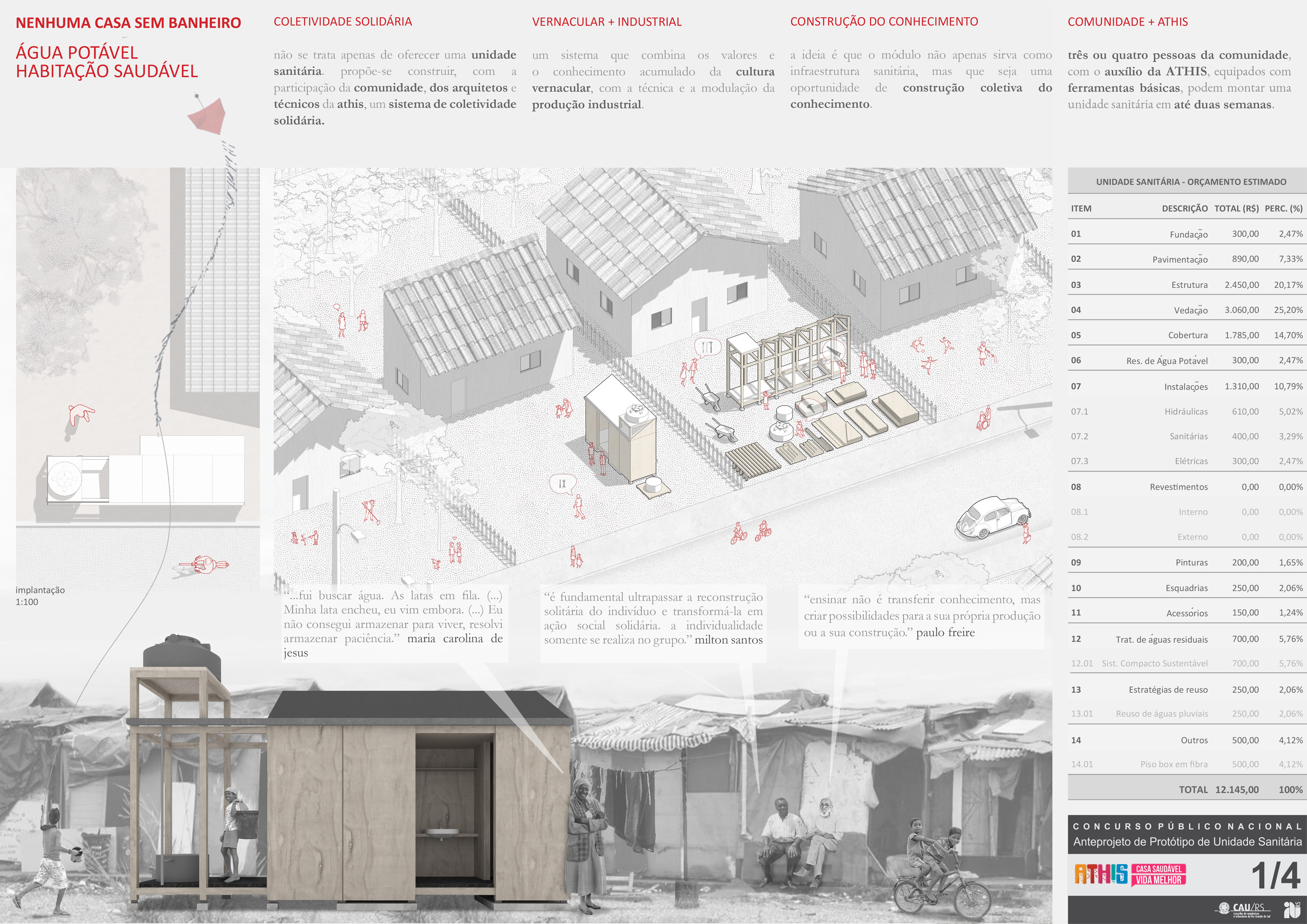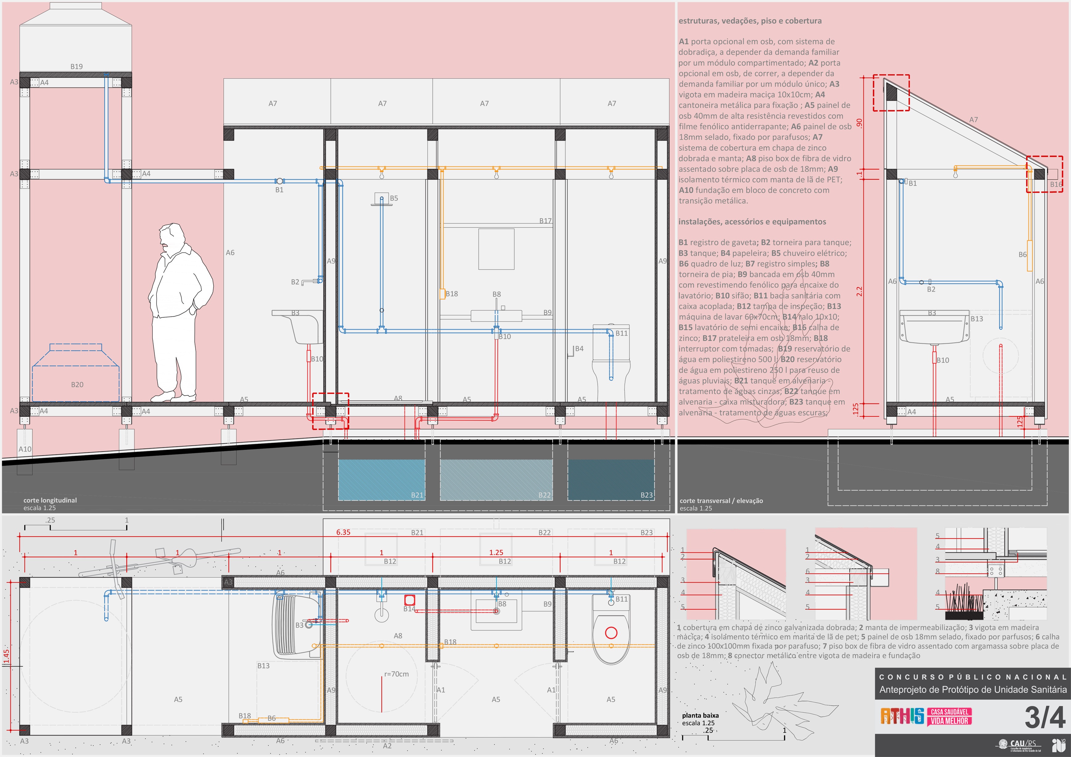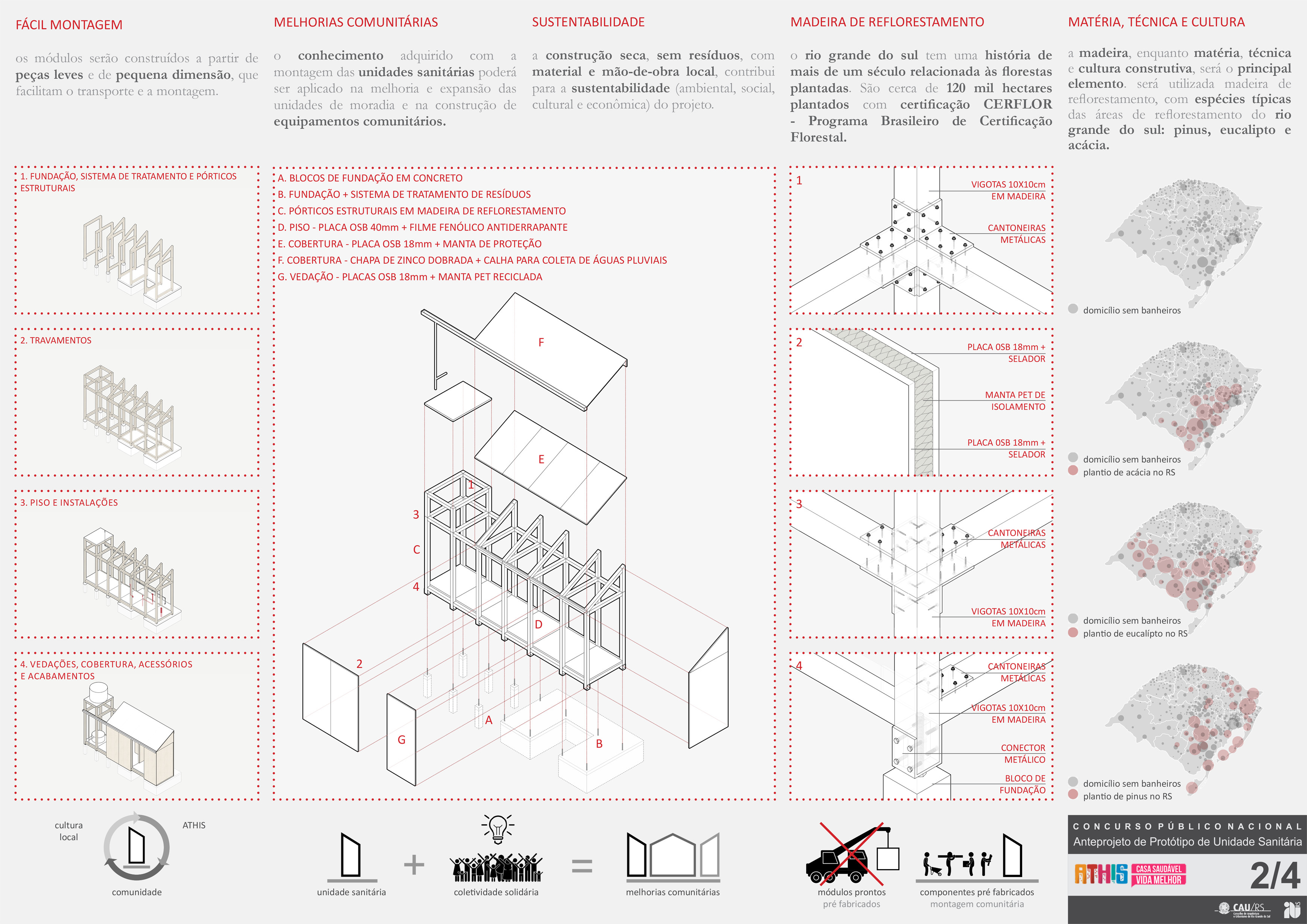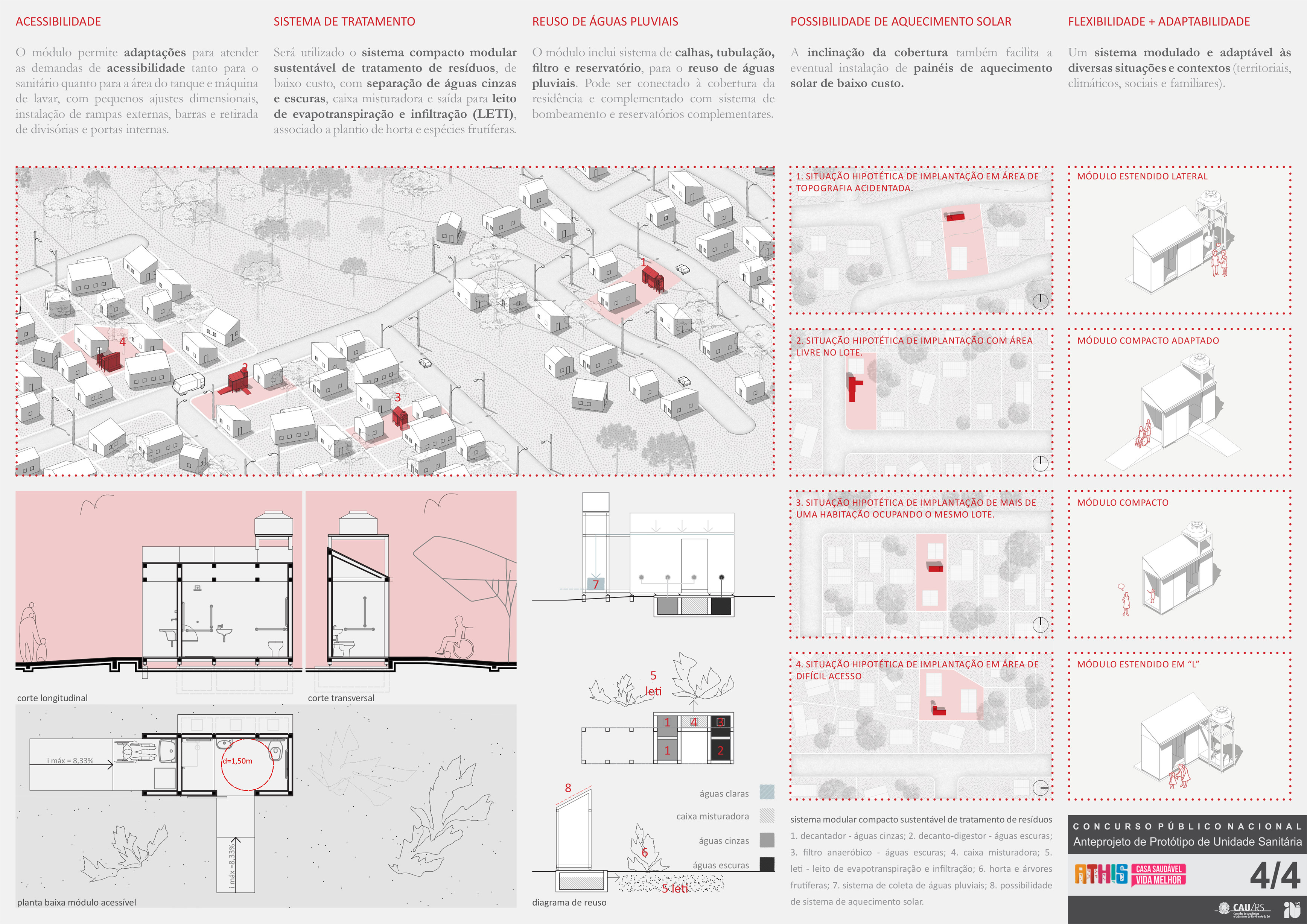 Projeto vencedor do Concurso Nacional de Arquitetura para Unidade Sanitária voltada à Assistência Técnica para Habitação de Interesse Social em domicílios urbanos do Rio Grande do Sul.
